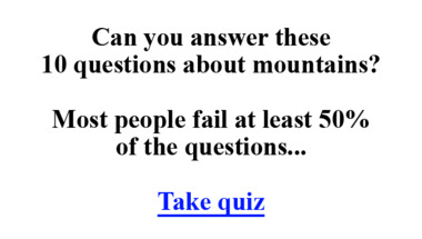 Look forward to questions like "What is the world´s longest mountain range, that lies as a continuous chain of highl.." and "What mountains divide France from Spain?"