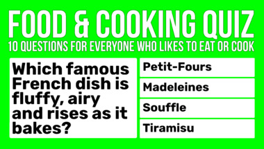 7/10 is the score to beat in this trivia quiz to put yourself over the average quiz taker. But you're probably going to be able to answer questions "What word means anything put into food during its manufacture?" and "Which famous French dish is fluffy, airy and rises as it bakes?" easy!