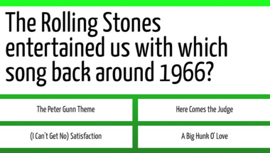 Look forward to questions like "The Rolling Stones entertained us with which song back around 1966?" and "Sonny and Cher entertained us with which song back around 1966?"