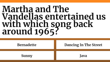 Look forward to questions like "Martha and The Vandellas entertained us with which song back around 1965?" and "The Beatles entertained us with which song back around 1965?"