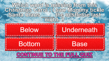 If you can answer "Which word is missing from this Christmas Carol : "The ____ and the ivy, when they ar.." and maybe even "Which word is missing from this Christmas Carol : "I saw Mommy tickle Santa Claus ___.." there is a good chance that you're going to beat the average score of 7/10 in this trivia quiz