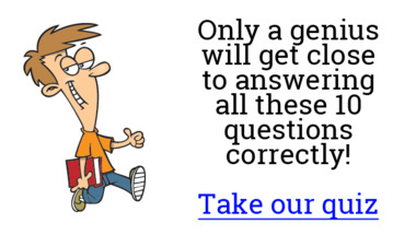 If you can answer "Which is the word for a group of musicians playing together?" and maybe even "What is a sudden violent explosion on the sun called?" there is a good chance that you're going to beat the average score of 5/10 in this trivia quiz