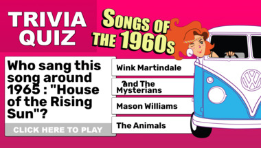 6/10 is the score to beat in this trivia quiz to put yourself over the average quiz taker. But you're probably going to be able to answer questions "Who sang this song around 1965 : "House of the Rising Sun"?" and "Who sang this song around 1965 : "Please Please Me"?" easy!