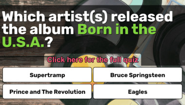 In this fun trivia quiz we're going to ask questions like "Which artist(s) released the album "Like a Virgin"?" and "Which artist(s) released the album "Born in the U.S.A."?".