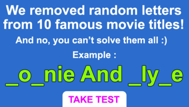 6/10 is what people on average are scoring in this trivia quiz so far. Are you ready to answer questions like "What's the 3rd missing letter : "The _i_ard of O_"" and "What's the 1st missing letter : "_est _i_e _tory""