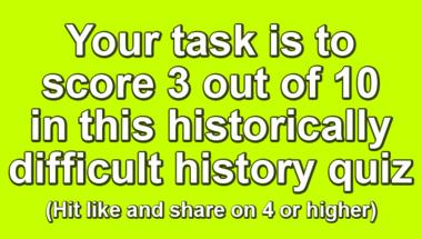 4/10 is the score to beat in this History quiz to put yourself over the average quiz taker. But you're probably going to be able to answer questions "Despite its name, the arctic country once known as Greenland is covered mostly in wha.." and "What three world leaders met at the Yalta conference in 1945?" easy!