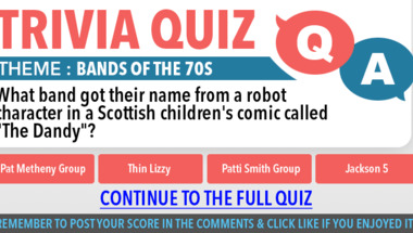7/10 is what people on average are scoring in this trivia quiz so far. Are you ready to answer questions like "In which band features Brian May on guitar?" and "What band got their name from a robot character in a Scottish children's comic called.."