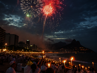 Which city in Brazil has a New Year's ball drop on the beach?