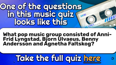 4/10 is the score to beat in this trivia quiz to put yourself over the average quiz taker. But you're probably going to be able to answer questions "What pop music group consisted of Anni-Frid Lyngstad, Bjorn Ulvaeus, Benny Andersson .." and "What band was Ozzy Osbourne a member of before going solo?" easy!